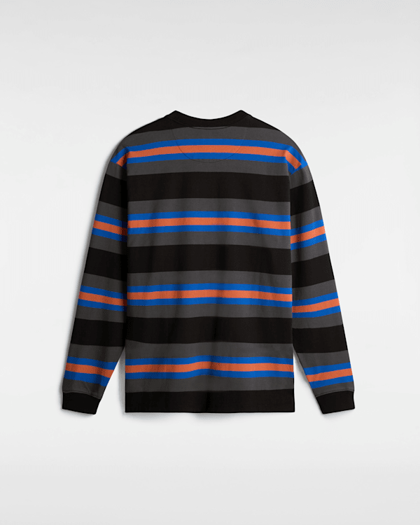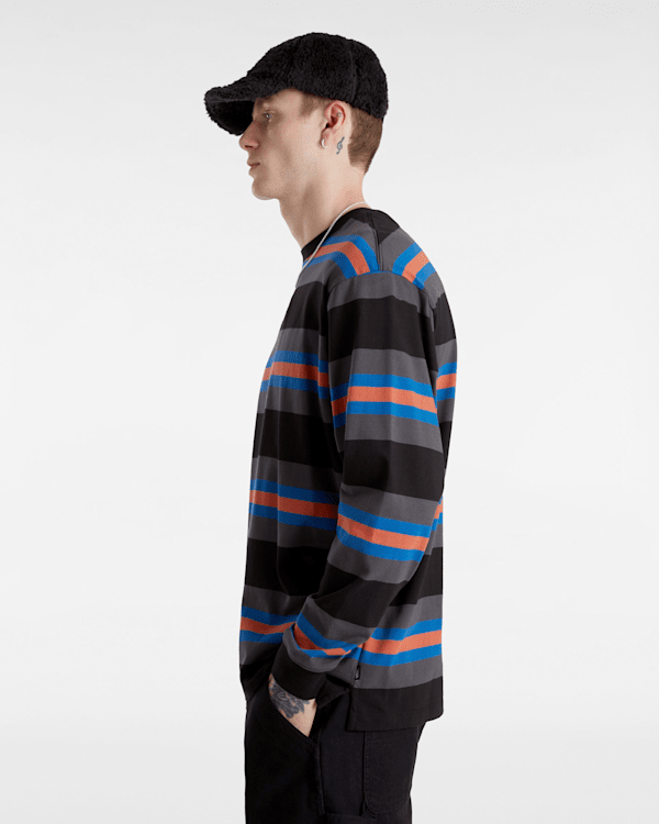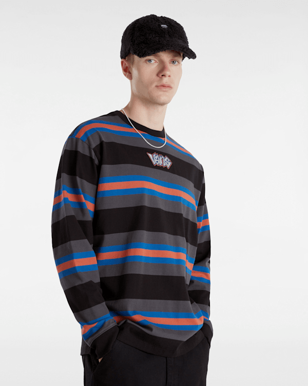 La camiseta de punto de manga larga Wilton es un modelo confeccionado en punto de algodón aterciopelado que se completa con el toque llamativo que aportan las rayas teñidas en prenda, el ribete en contraste en el cuello y el bordado en el centro del pecho con el logotipo retro de Vans®.