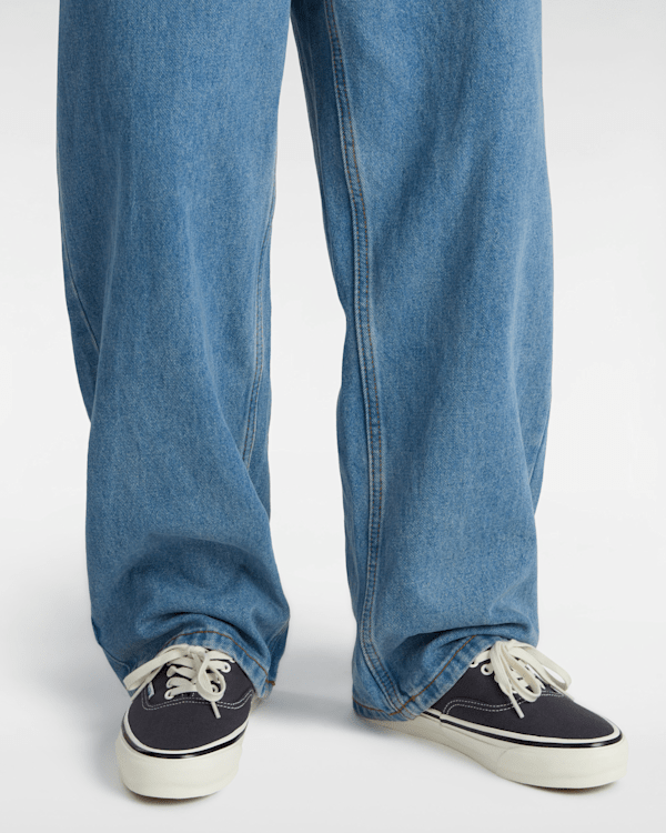 Las Premium Authentic 44 Duck son unas zapatillas de caña baja con cordones y palas de lona, decoradas con la emblemática etiqueta roja de Vans en el talón.
