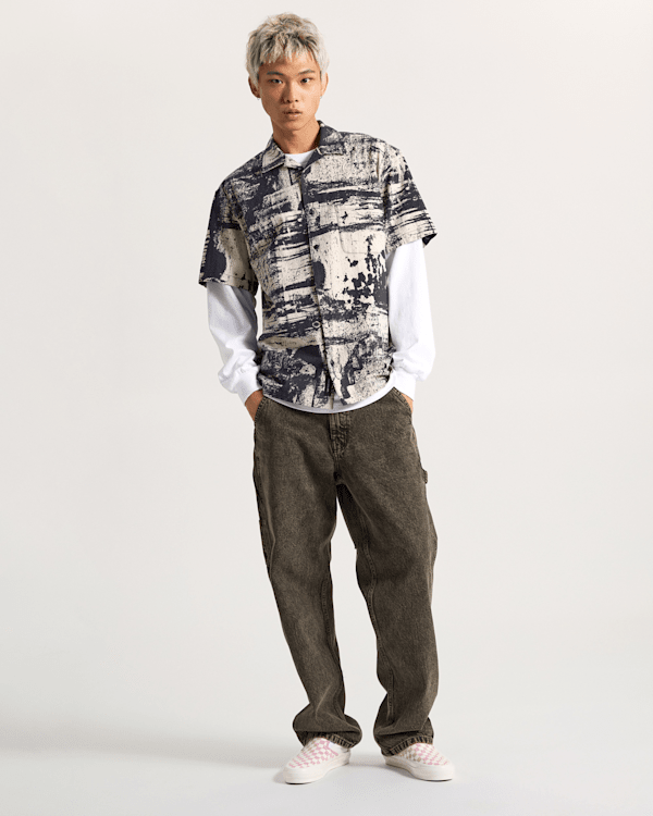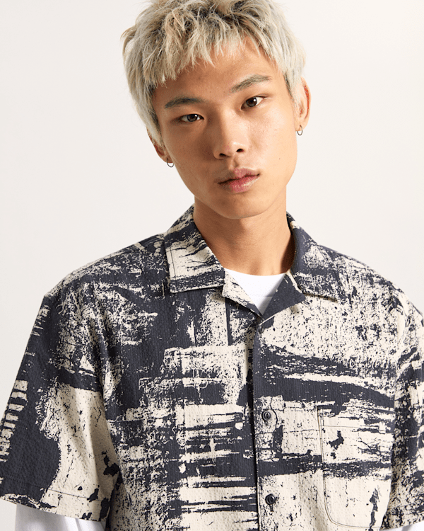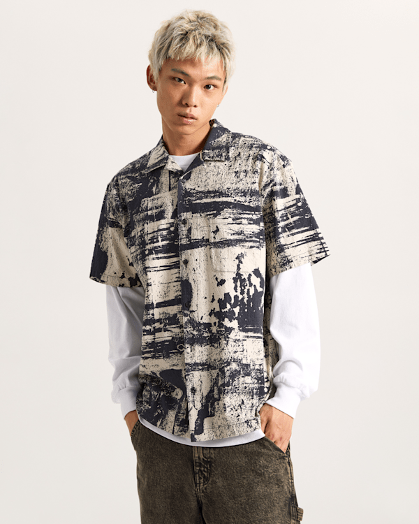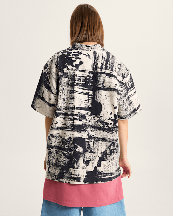 Saca tu lado artístico con la camisa Fallon, un diseño de manga corta y bajo recto, con un estampado de brochazos industriales.