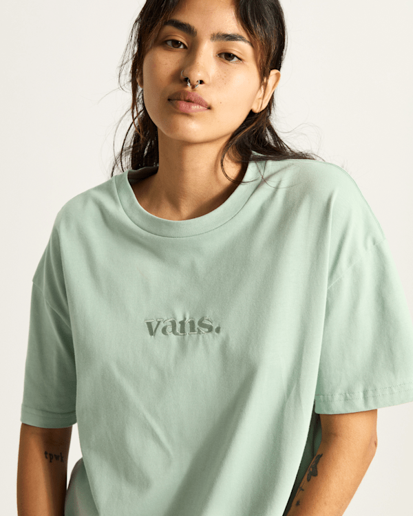 Apuesta por el estilo clásico con nuestra camiseta Essential, un diseño básico de cuello redondo y manga corta, decorado con el logotipo de Vans bordado tono sobre tono en la parte central delantera para conferirle un sutil toque de la marca