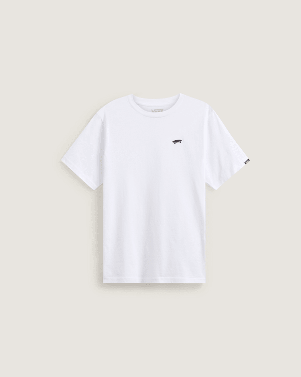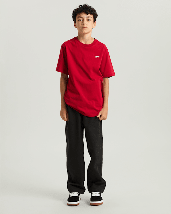 La camiseta Salton para niños es un modelo de cuello redondo y manga corta, decorado con un bordado en el lado izquierdo del pecho con nuestro logotipo en forma de monopatín, detalle en homenaje a nuestra arraigada historia como marca intrínsecamente relacionada con el mundo del skate