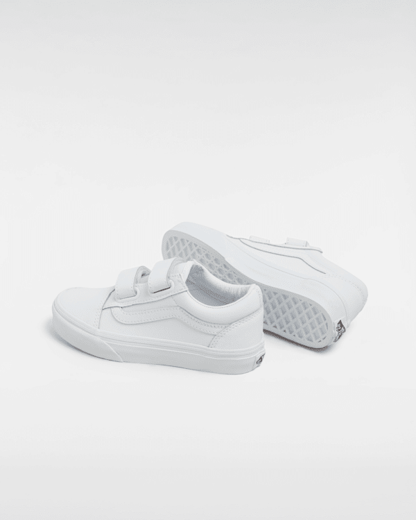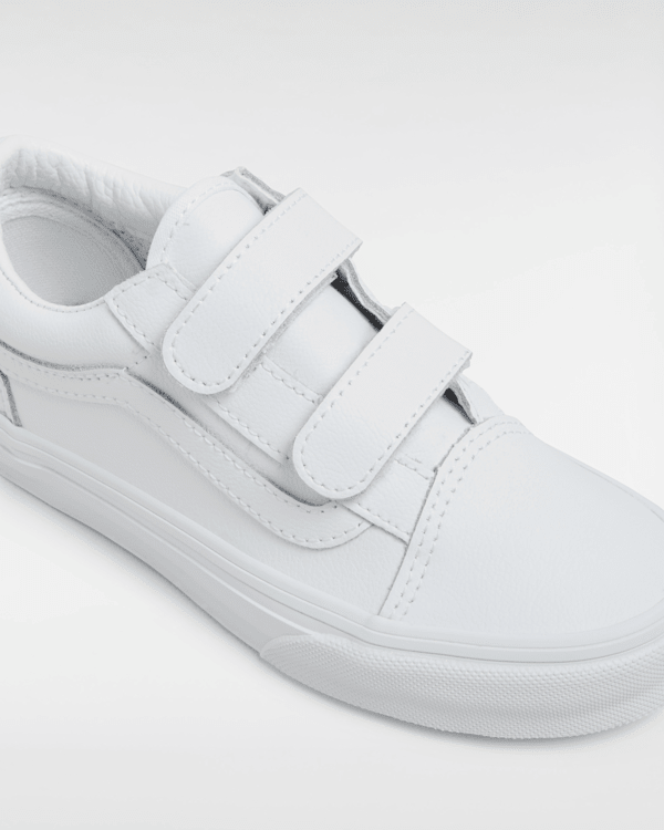Un modèle à Sidestripe iconique spécialement pensé pour les enfants grâce à sa fermeture à scratch Les Old Skool V Classic Tumble pour enfant revisitent nos emblématiques chaussures à Sidestripe en remplaçant les lacets traditionnels par une double fermeture à scratch.