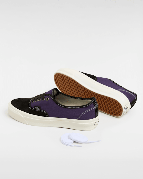 Chaussure basse emblématique Doublure de col en cuir pleine fleur Lacets 100 % coton, étiquette Vans tissée Paroi latérale plus haute au fini satiné, bande de renfort avec renfort Osnaburg original des années 90 Semelle intérieure : mousse Sola All-Day-Comfort (ADC), anti-fatigue, 30 % de matériaux biosourcé