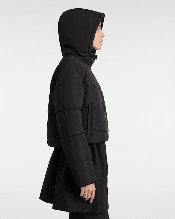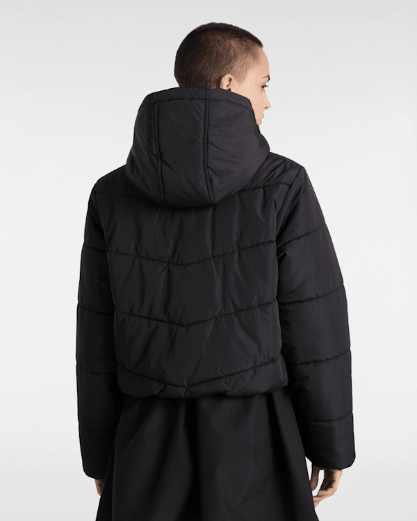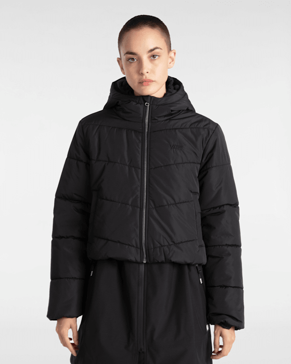 Tissu 100% polyester Doudoune courte Enduit déperlant durable (DWR) sans PFC Garnissage Dupont Sorona Longueur : 50,8 cm Logo Vans® brodé sur le côté gauche de la poitrin