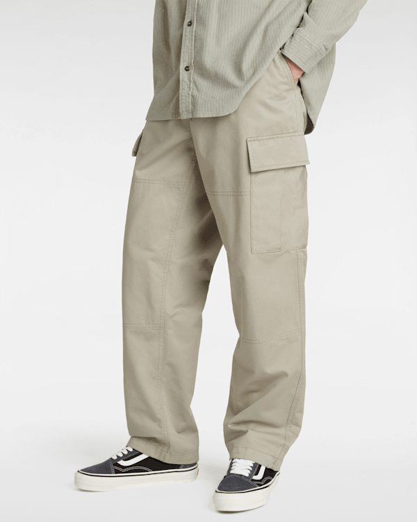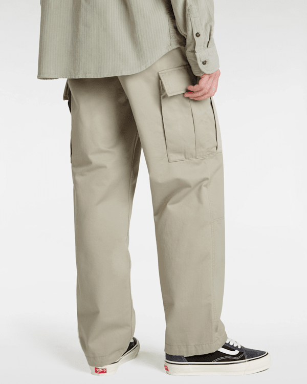 Ce modèle comporte également des détails brodés sur les coutures latérales et les poches, des poches cargo plissées avec fermeture à bouton dissimulé, des poches arrière et des poches avant, ainsi qu'une étiquette Vans cousue à l'intérieur de l'ourlet pour apporter une touche griffée supplémentaire lorsqu'il retroussé