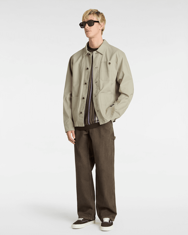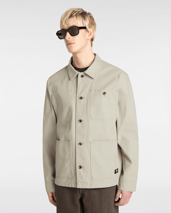 Alliant des détails utilitaires à des lignes simples et épurées, la veste en toile Drill Chore insuffle une touche de modernité à cette silhouette classique