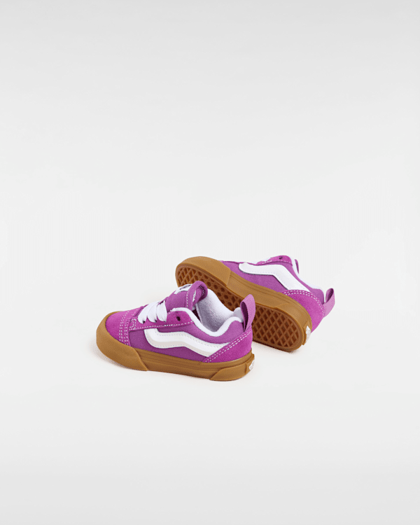 Les Knu Skool pour petit s'émancipent des Old Skool originales de 1977, véritables icônes, avec une coupe adaptée aux petits pieds, une silhouette tapageuse et des finitions XXL