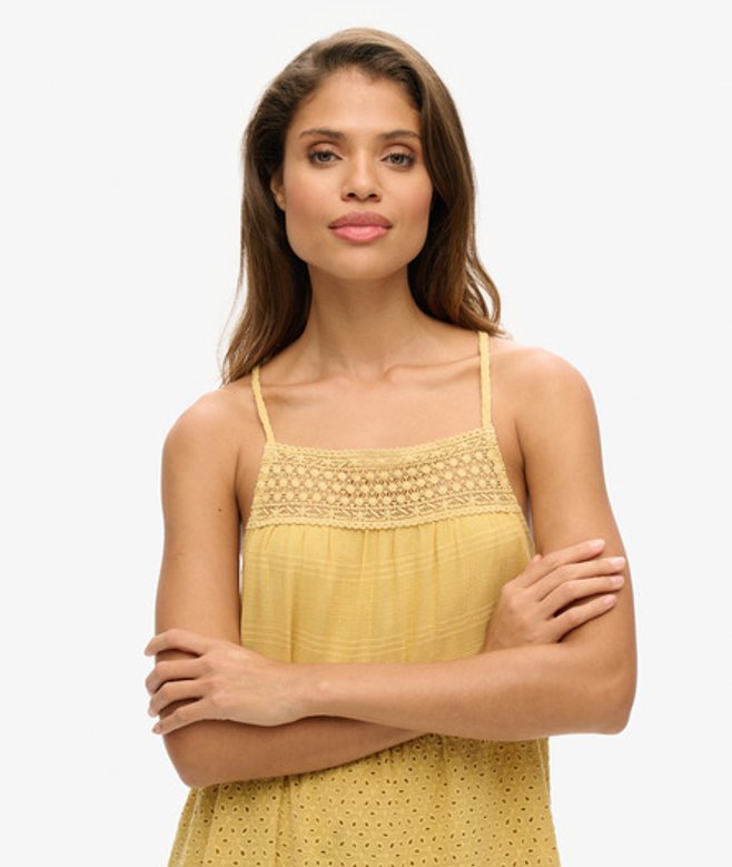 Superdry Vintage Cami Maxi-jurk met Kant Geel | ricciano NEDERLAND