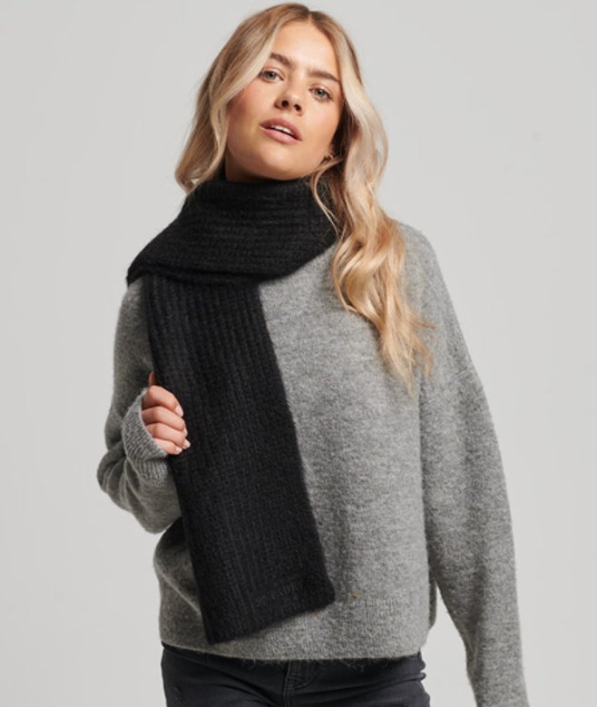 Superdry Geribde Essential Sjaal Zwart | ricciano NEDERLAND