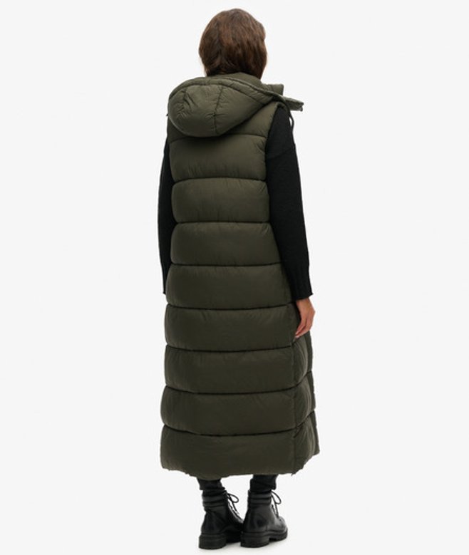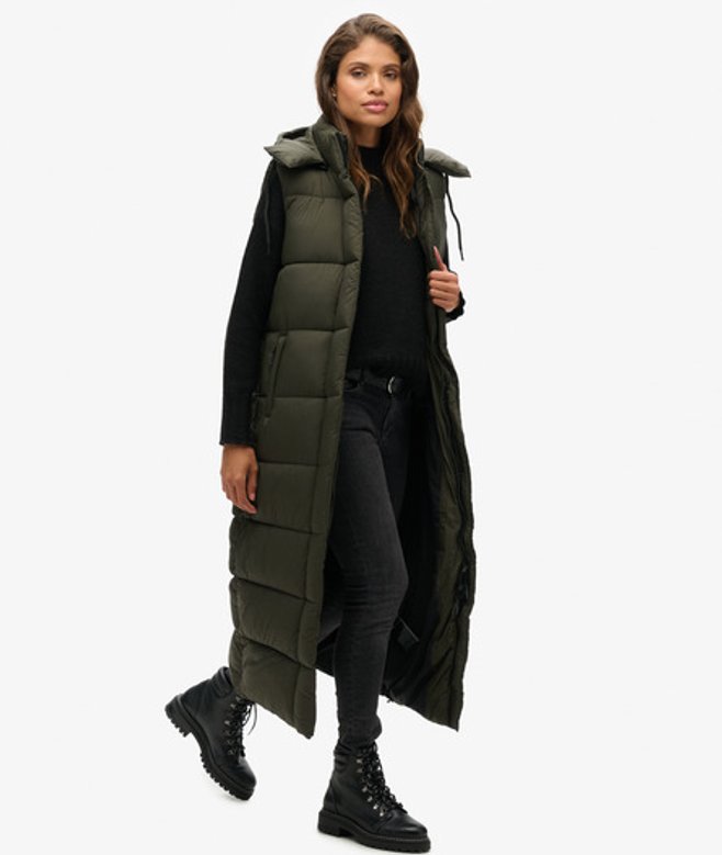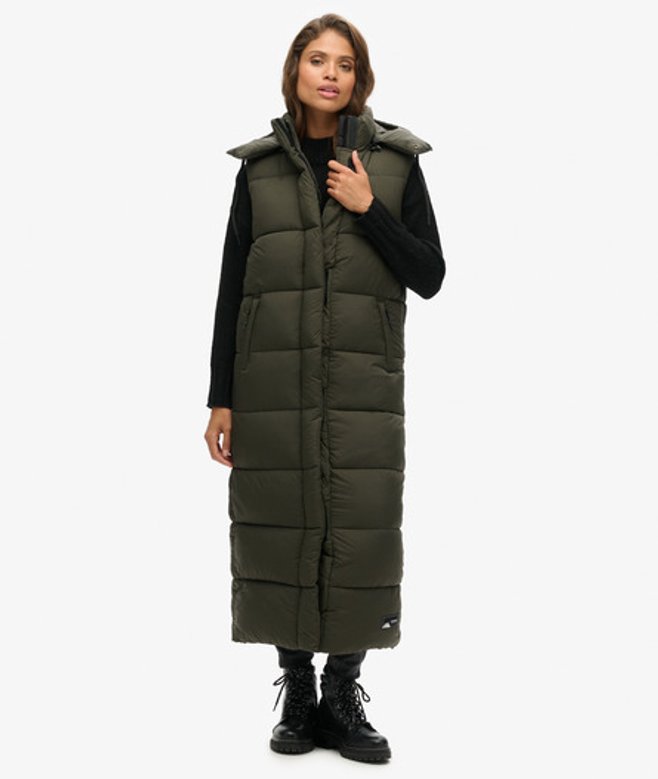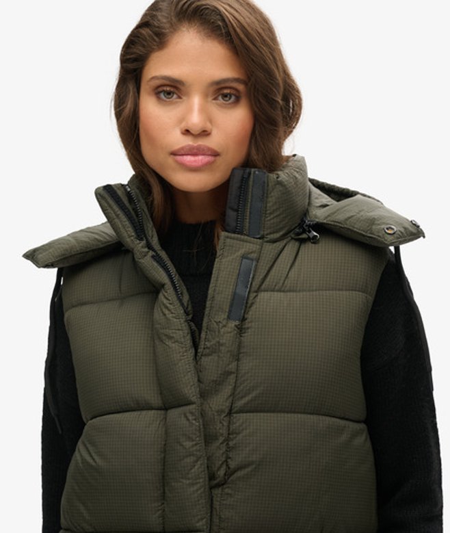 Superdry Lange Bodywarmer met Capuchon en Ripstop Groen