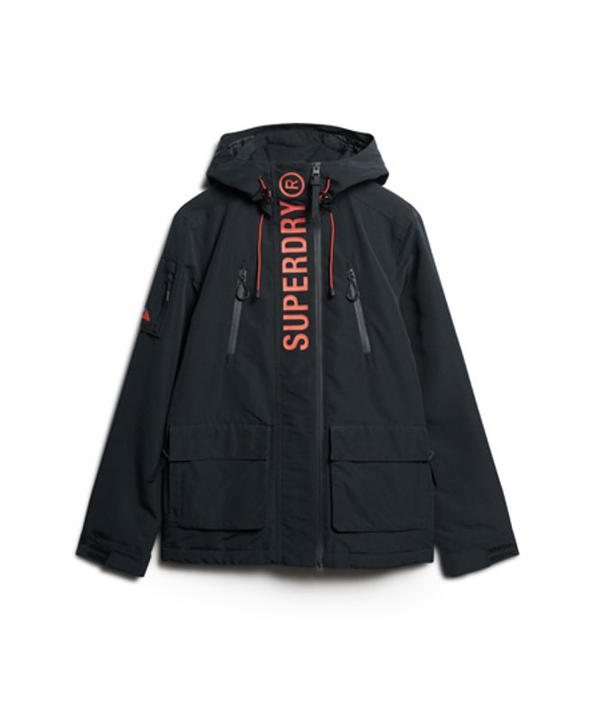 Aansluitend: een nauw op het lichaam aansluitende pasvorm Capuchon met verstelbaar elastisch trekkoord Zachte kraagvoering Dubbellaagse tweewegritssluiting Met klittenband te verstellen manchetten Mouwzak met rits Zes buitenzakken Body en mouwen met gewatteerde voering Verstelbaar elastisch trekkoord in de zoom Superdry-logoprint Geborduurde afbeelding op de mouwzak