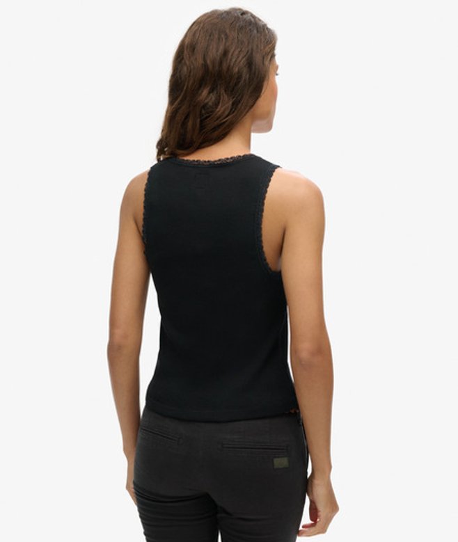 Slimfit - de nauw aansluitende pasvorm zorgt voor een getailleerde look Geribd materiaal Kanten boorden Laag uitgesneden ronde hals Mouwloos Superdry-label