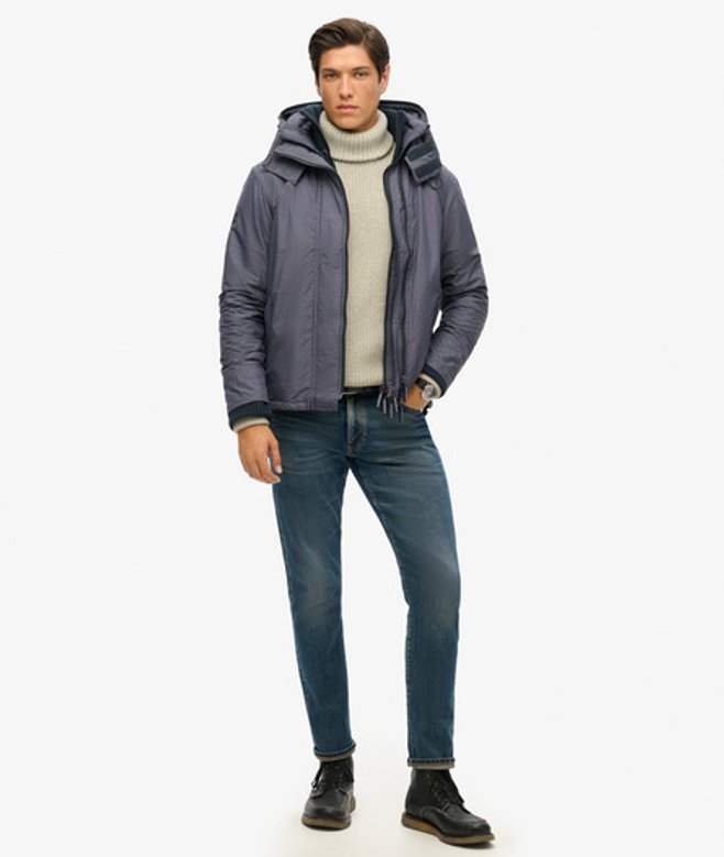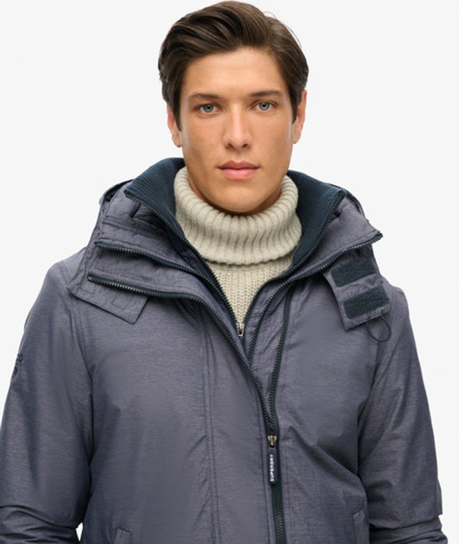 Slimfit - de nauw aansluitende pasvorm zorgt voor een strakkere look Capuchon met elastisch trekkoord Geribde kraag en mouwboorden Driedubbele rits, tweewegsluiting Twee voorzakken Verstelbaar elastisch trekkoord in de zoom Comfortabele voering Binnenzak met drukknoopsluiting Geborduurde merkdetails