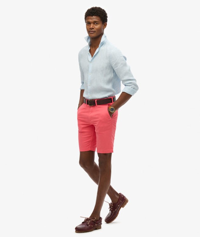 Slimfit - de nauw aansluitende pasvorm zorgt voor een getailleerde look Rits- en knoopsluiting Riemlussen Twee zijvakken Muntzakje Twee achterzakken met knoopsluiting Kenmerkende Superdry-patch