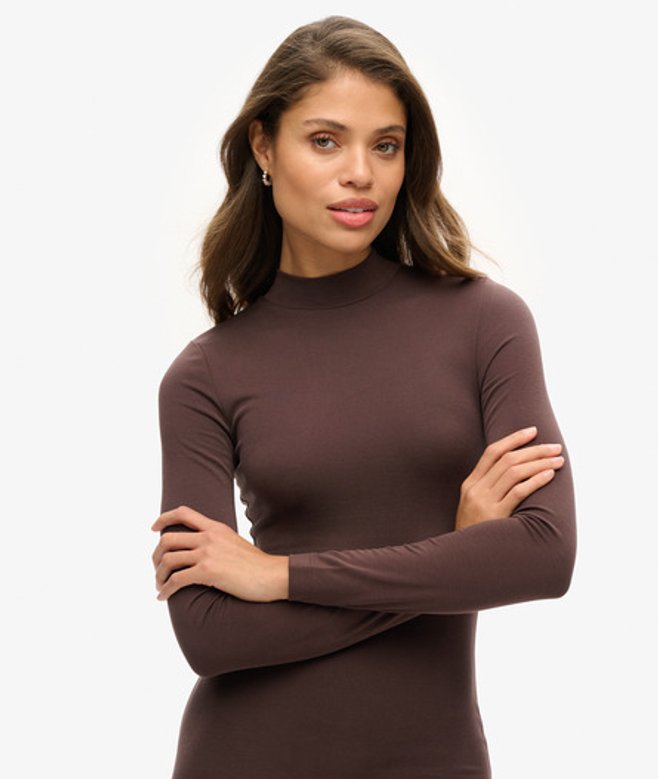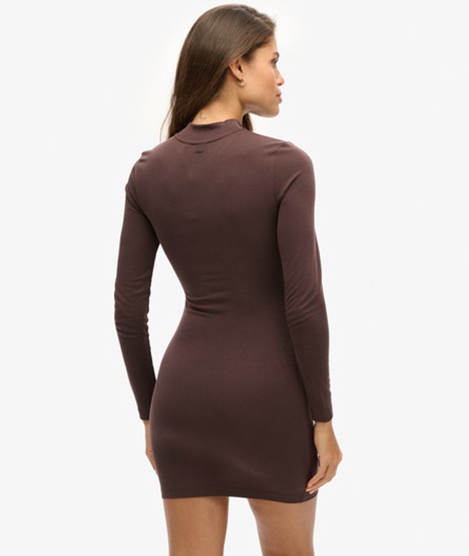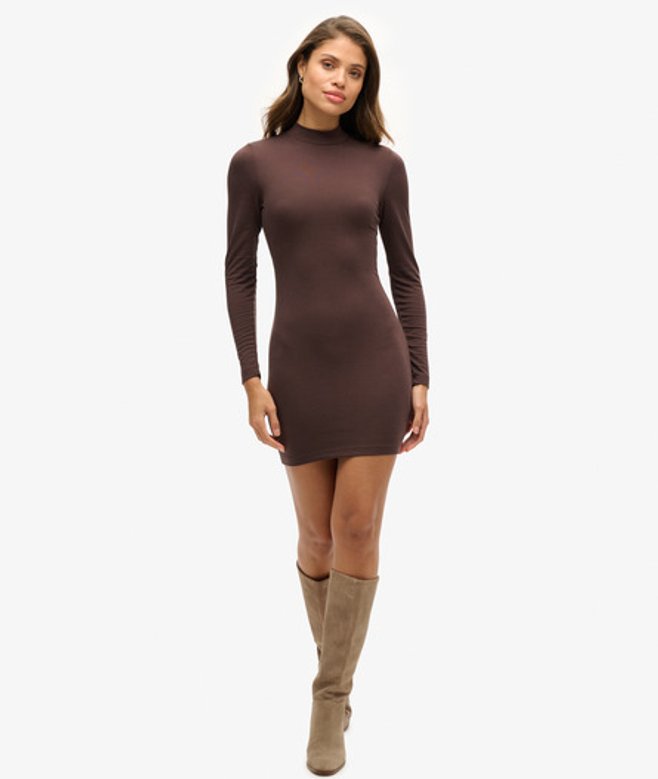 Superdry Jersey Mini-jurk met Hoge Hals Bruin | ricciano NEDERLAND