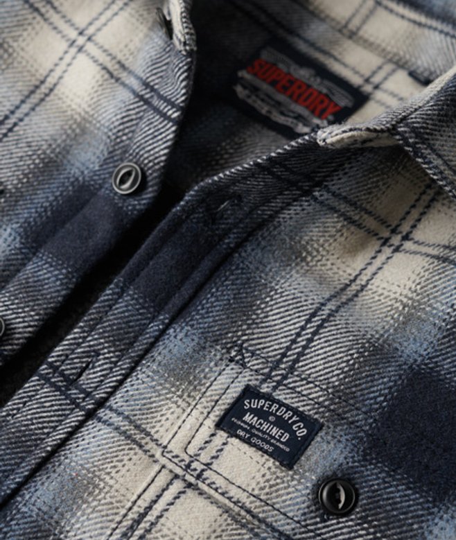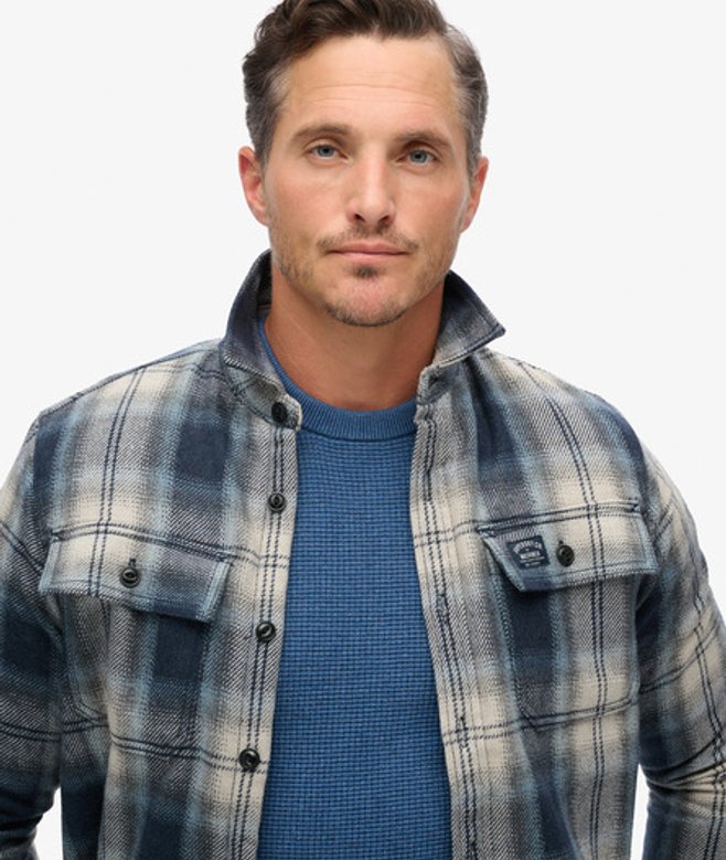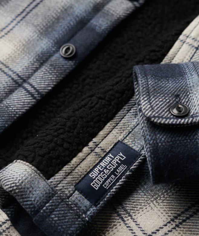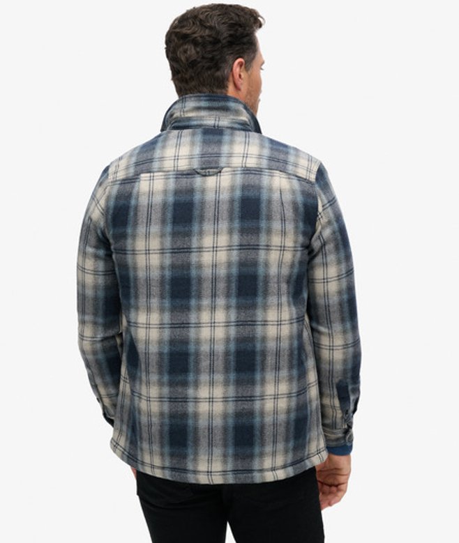 Superdry Wollen Geruit Overshirt met Fleece Voering Donkerblauw