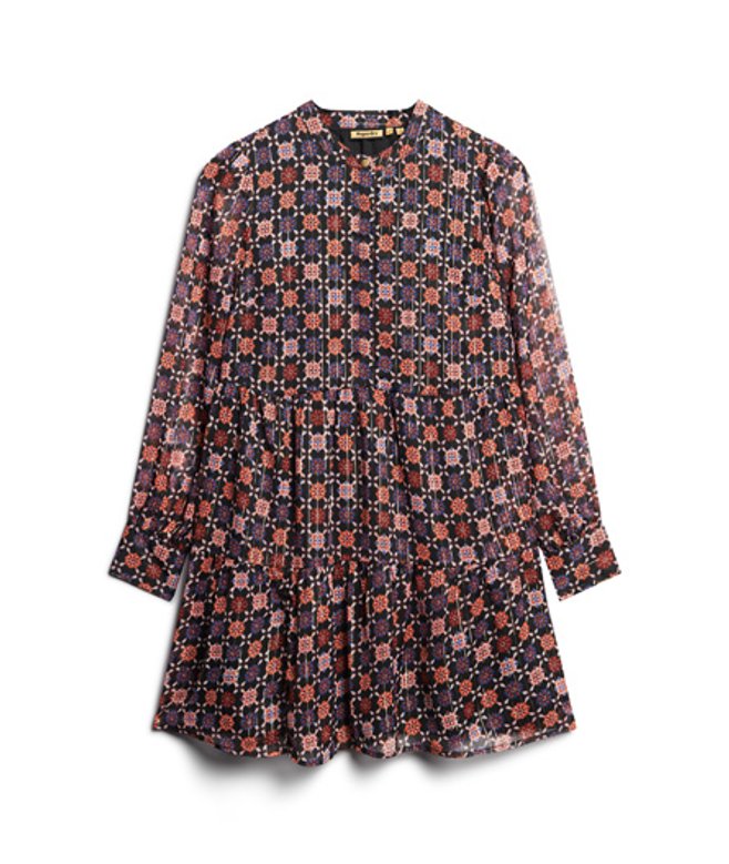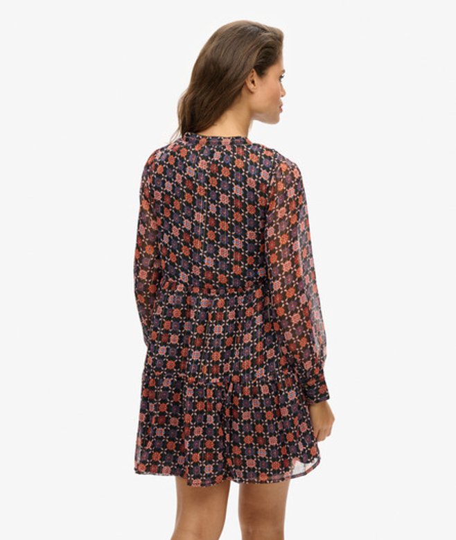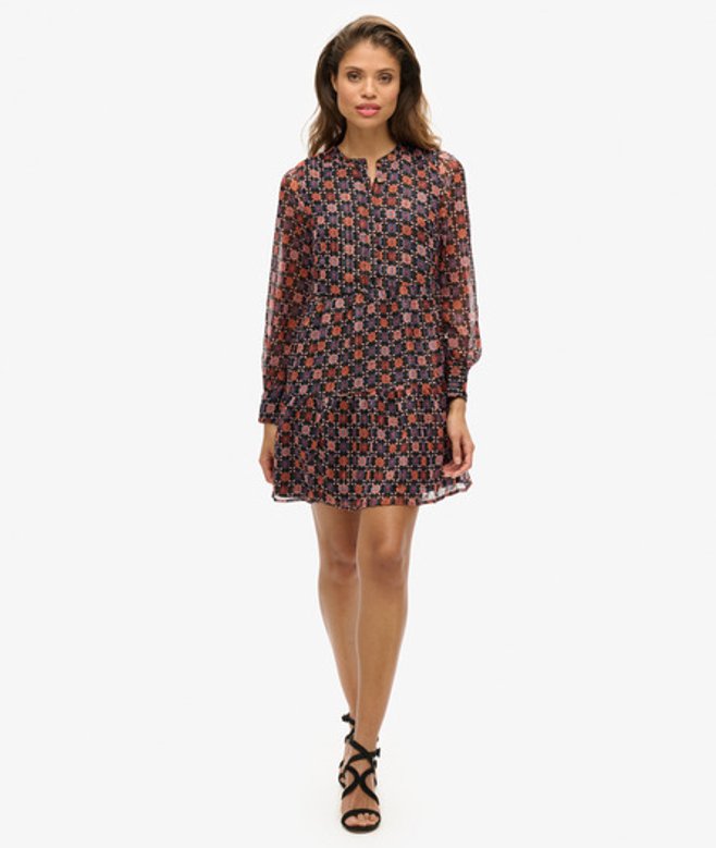 Met onze gelaagde mini-jurk met lange mouwen geef je op een moeiteloze manier wat retrocharme aan je look.
