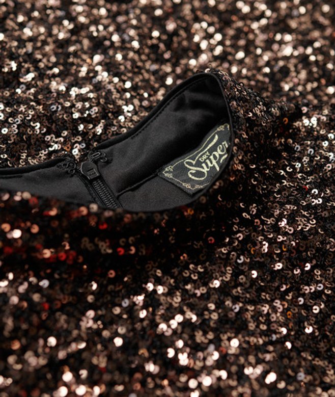Superdry Mouwloze Mini-jurk met Lovertjes en A-lijn Bruin