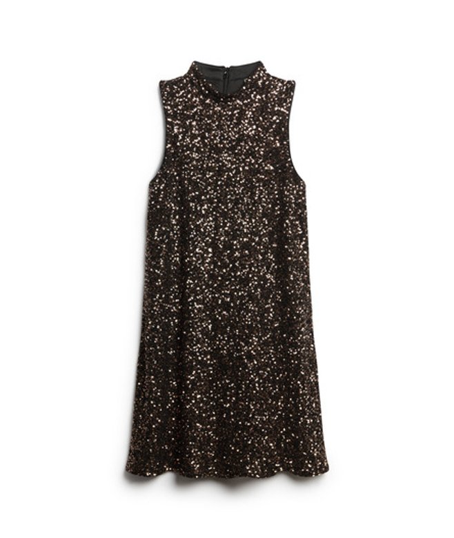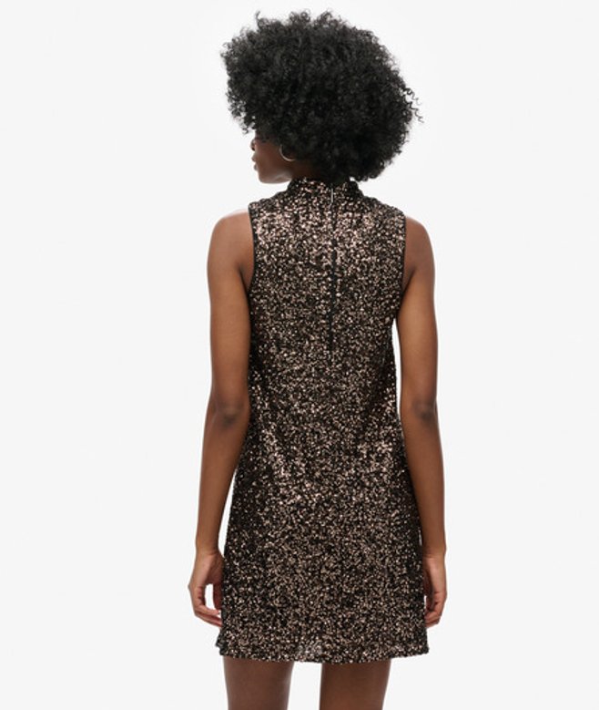 Superdry Mouwloze Mini-jurk met Lovertjes en A-lijn Bruin | ricciano NEDERLAND