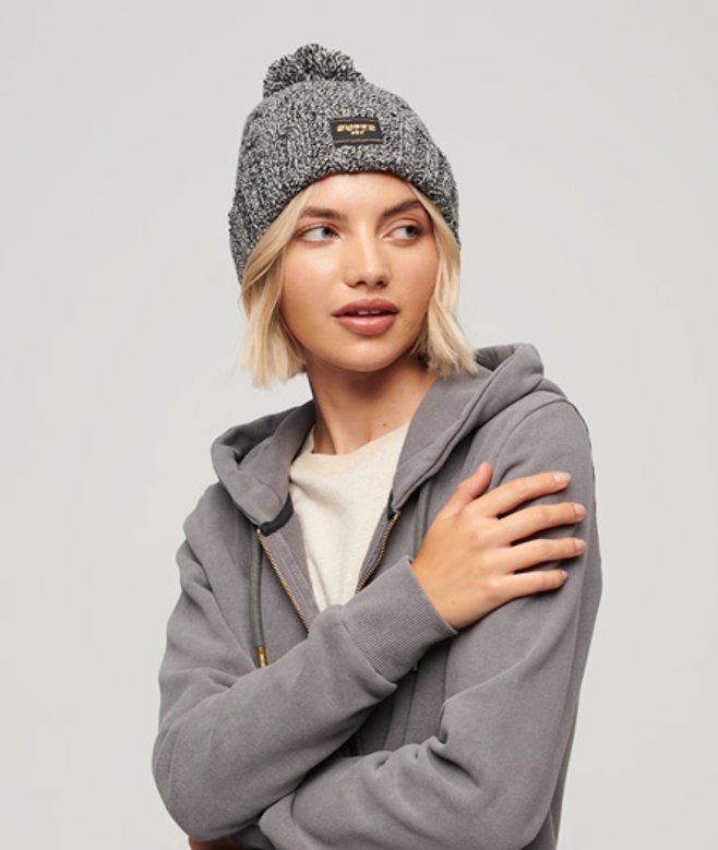 Superdry Kabelgebreide Beanie Zwart