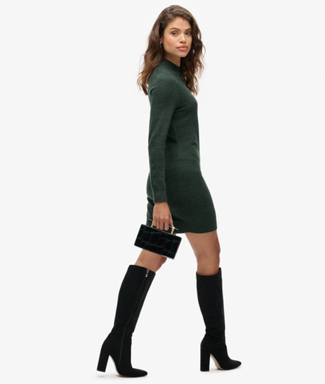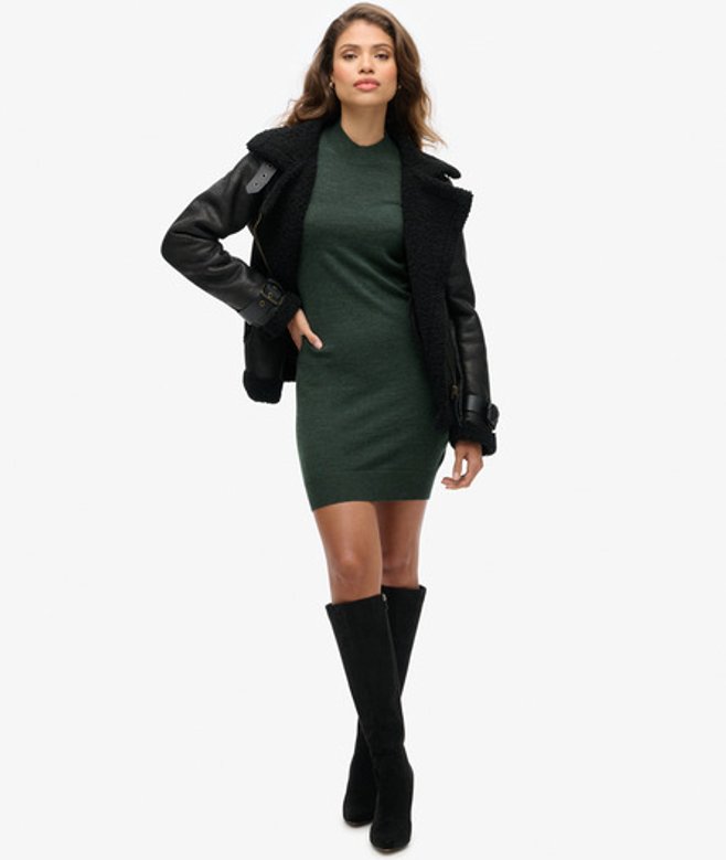 Kies je gebruikelijke maat 100% merinowol Hoge halslijn Lange mouwen Geribde boorden en zoom Lengte tot halverwege het bovenbeen Metalen Superdry-label