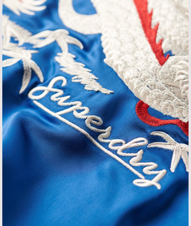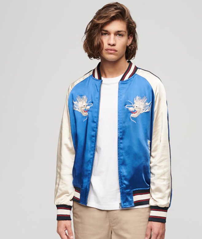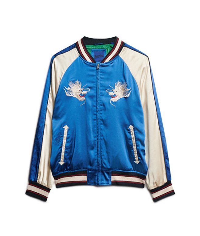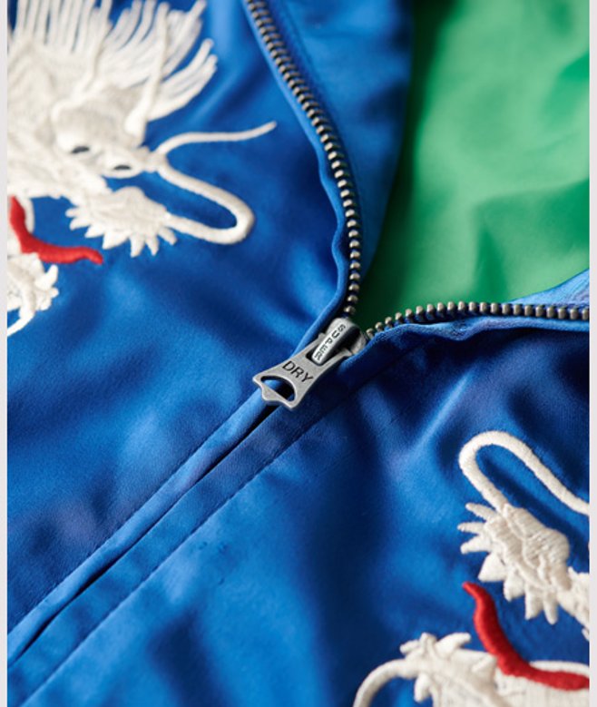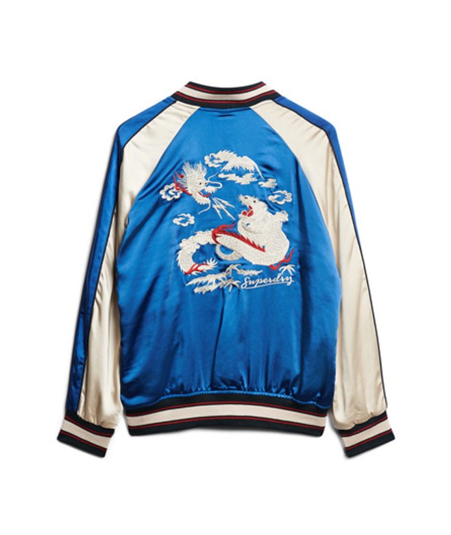 Kies je gebruikelijke maat Ritssluiting Lange mouwen Geribde kraag en boorden Geborduurde grafische afbeeldingen Twee voorzakken met drukknopen Eén binnenzak met drukknoop Geborduurde grafische afbeeldingen Geborduurd Superdry-logo Links en rechts op de borst staan prachtig geborduurde drakenkoppen; de achterkant is versierd met een tijger en een draak die in een gevecht zijn verwikkeld.