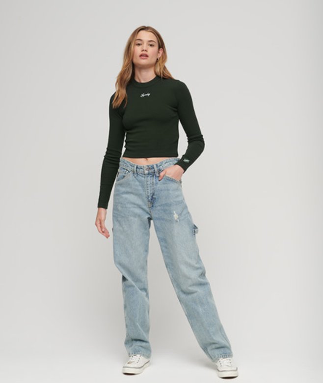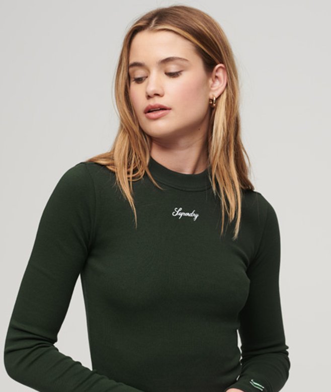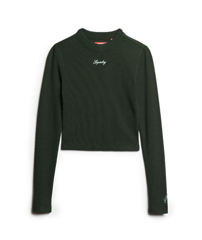 Superdry Geribde Korte top met Lange Mouwen en Borduursel Groen | ricciano NEDERLAND