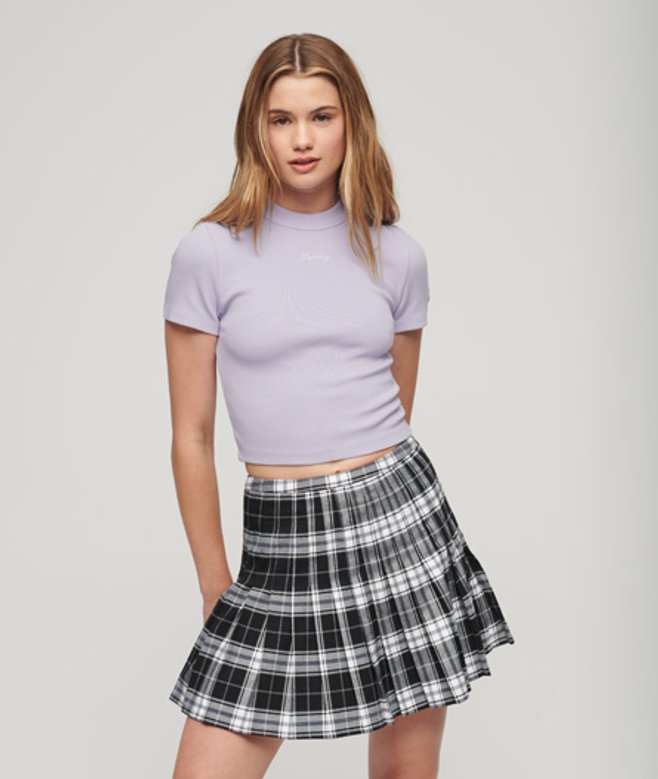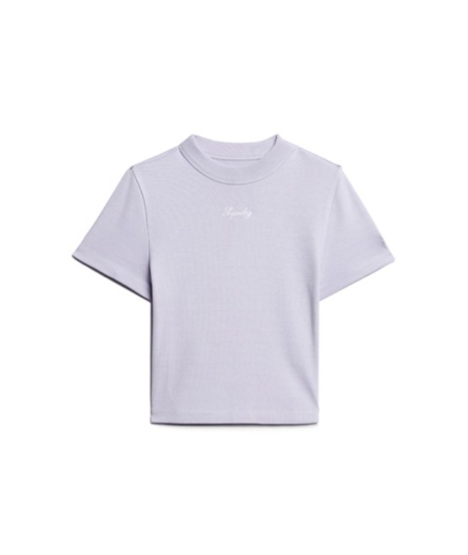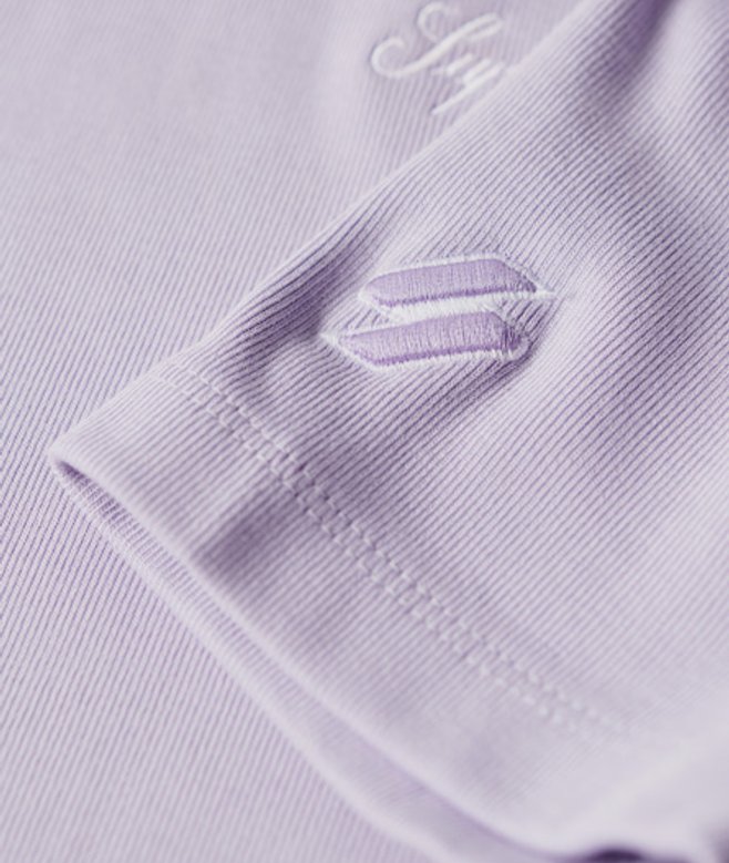 Slimfit - de nauw aansluitende pasvorm zorgt voor een getailleerd silhouet Geribde stof Ronde hals Korte mouwen Kort model Geborduurd Superdry-logo in schrijfletter Geborduurd S-logo
