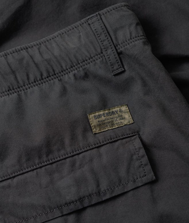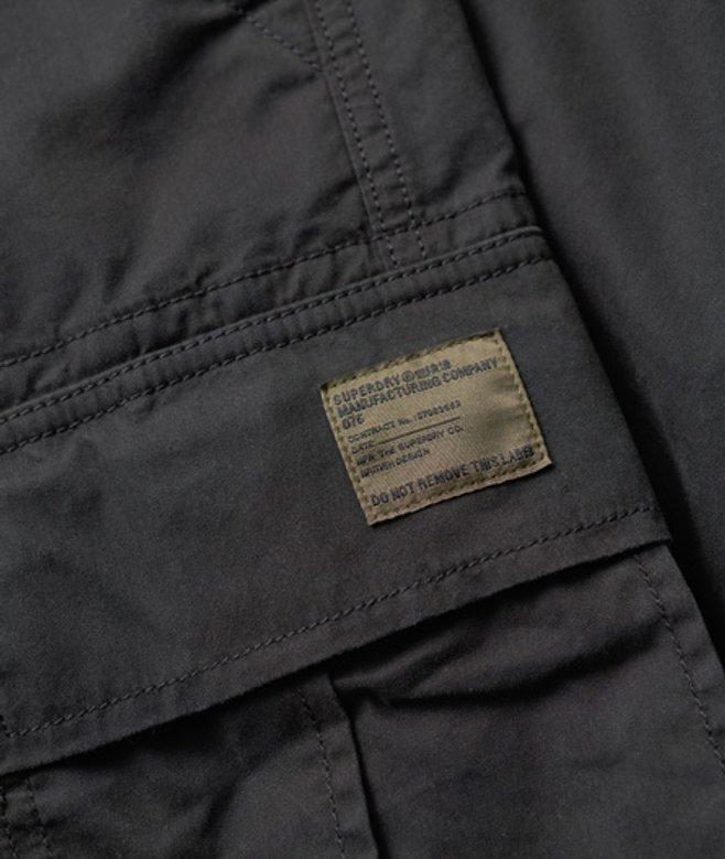 Klassieke gebruiksslijtage met biezen Vintage verweerde wassing Knoopsluiting met ritssluiting Riemlussen Verstevigd zitvlak Twee voorzakken Twee achterzakken met drukknoopsluiting Twee cargozakken met drukknoopsluiting Zomen met verstelbare trekkoorden Kenmerkende Superdry Utility Wear-logopatches