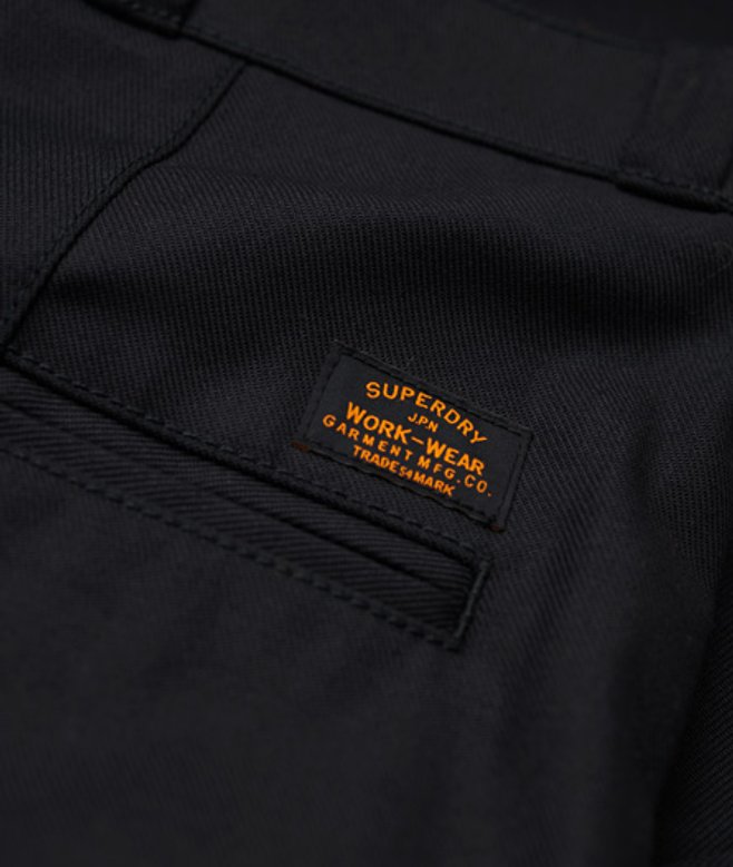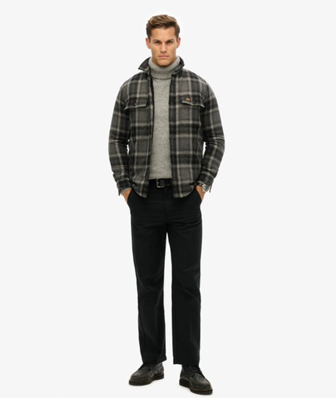 Zware keperstof Knoopsluiting met ritssluiting Riemlussen Twee zijzakken Twee achterzakken Kenmerkende Superdry-patch