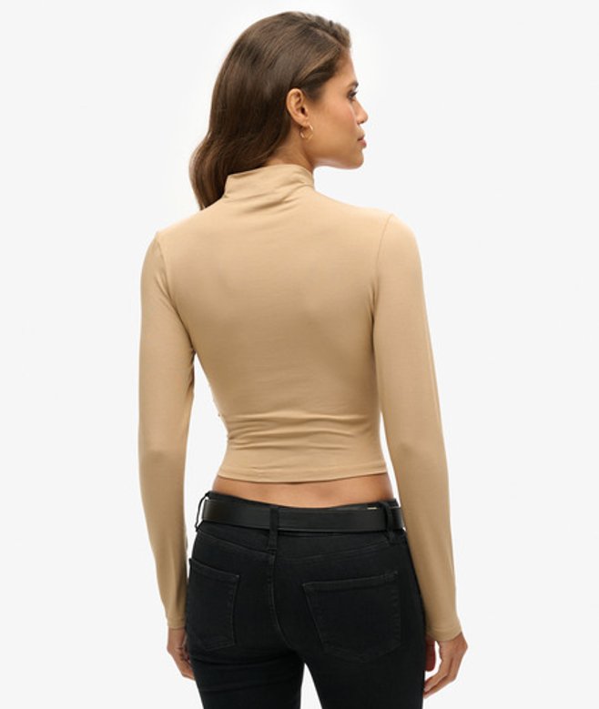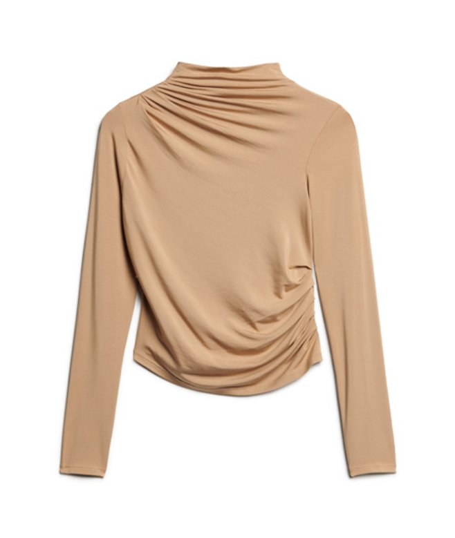 Superdry Top met Lange Mouwen, Ruches en Hoge Hals Bruin | ricciano NEDERLAND