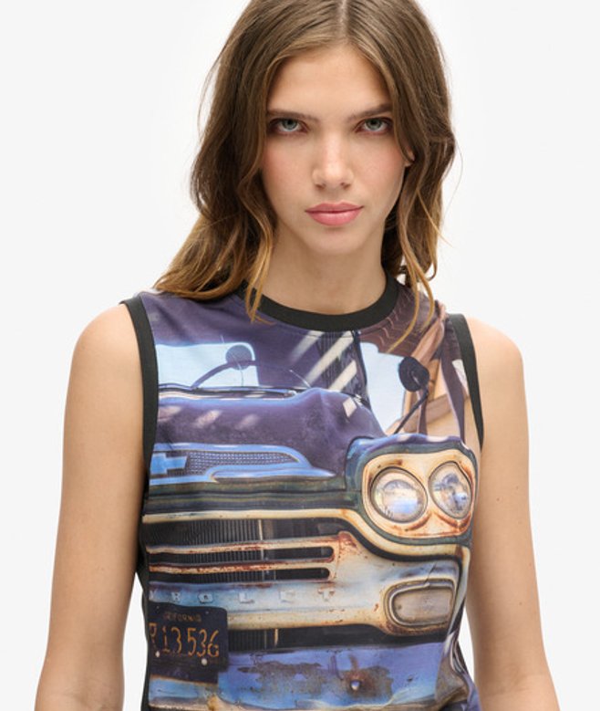 Geef je garderobe wat rebelse creativiteit en creëer deze zomer een authentieke look in dit hemdtopje met subprint.