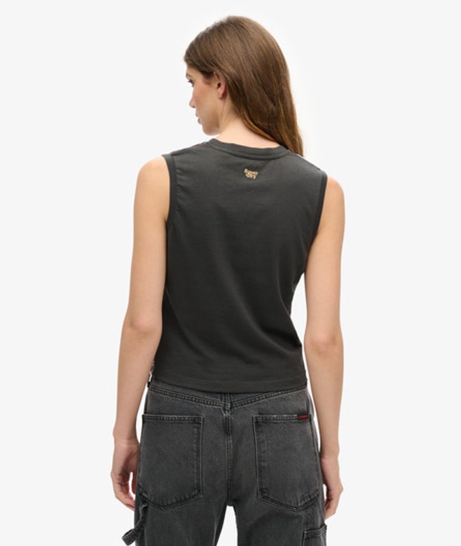 Slimfit - de nauw aansluitende pasvorm zorgt voor een getailleerd silhouet Geribde ronde hals Mouwloos Geborduurd Superdry-logo op de achterkant