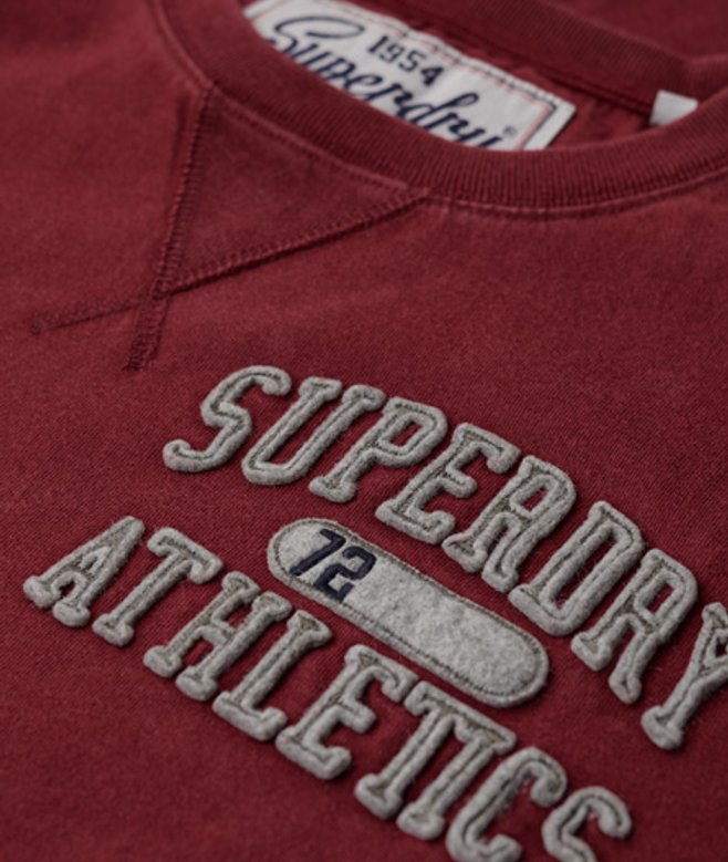 Kies je gebruikelijke maat Ronde hals Lange mouwen Verweerde details Verweerd Superdry-logo Kenmerkende Superdry-patch