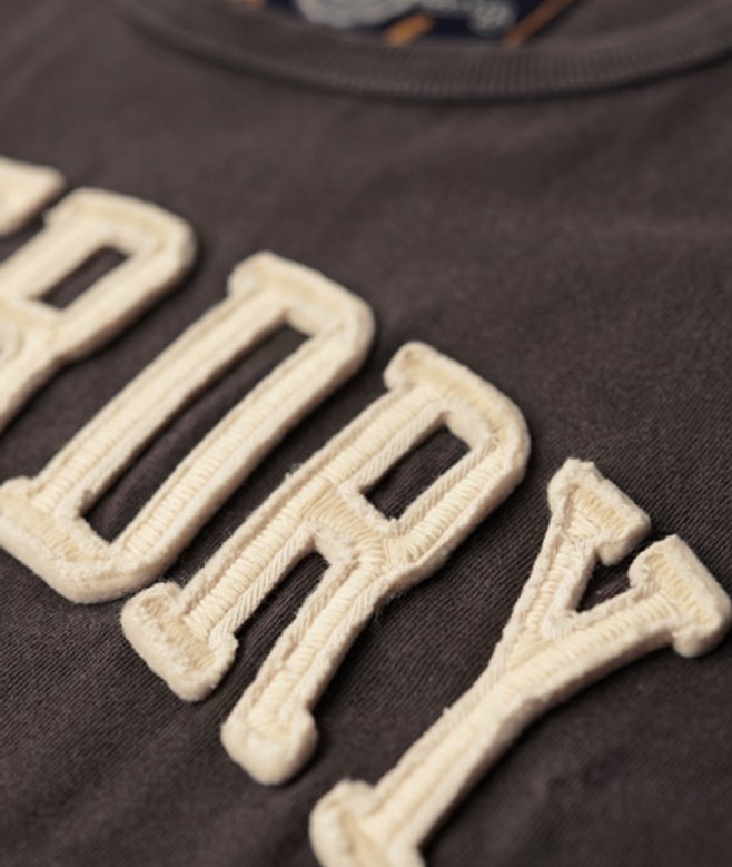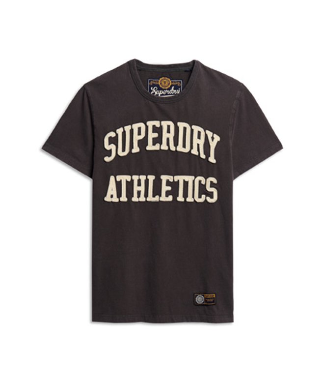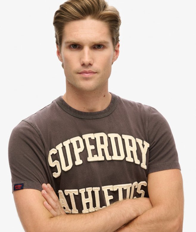 Kies je gebruikelijke maat Ronde hals Korte mouwen Superdry-patch Crèmekleurige 'Superdry Athletics'-appliqué van verweerd vilt met borduursel.