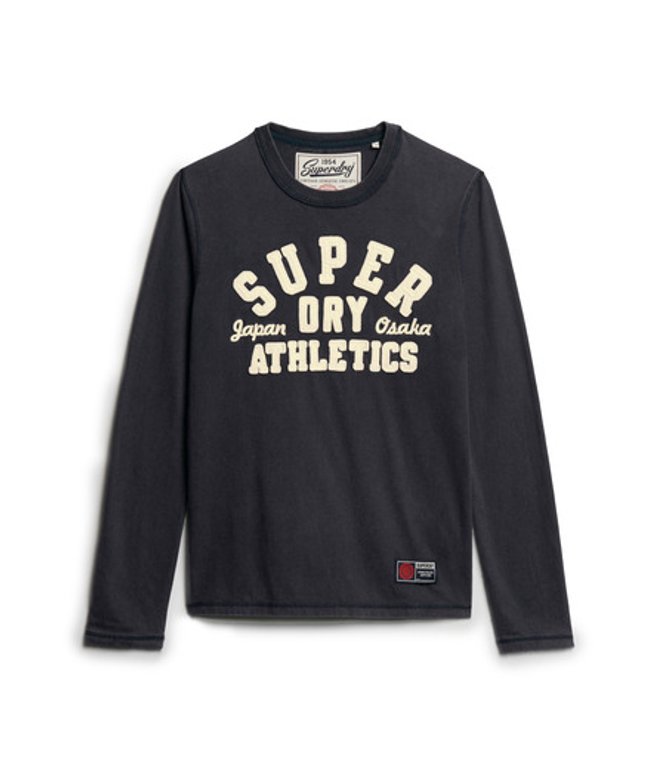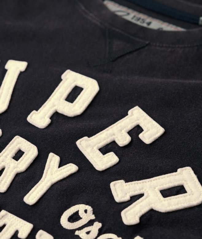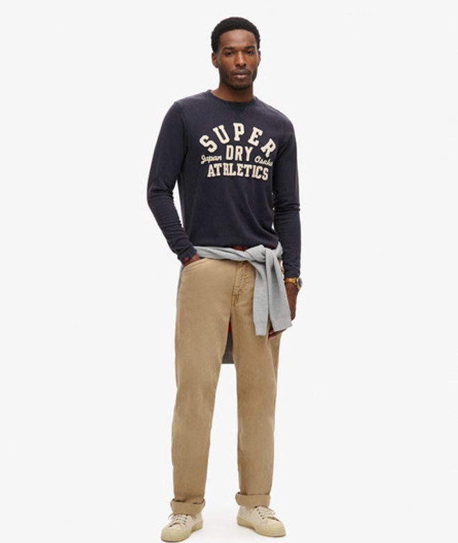 Kies je gebruikelijke maat Geribde ronde hals Lange mouwen Verweerd Superdry-logo Kenmerkende Superdry-patch