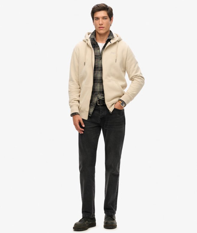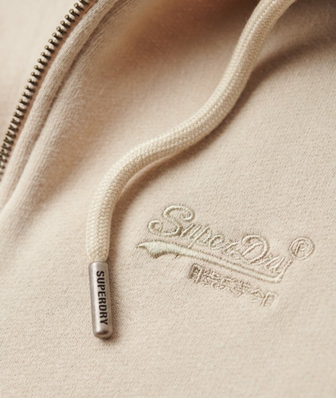 Slimfit - de nauw aansluitende pasvorm zorgt voor een getailleerd silhouet Gevoerde capuchon met trekkoord Ritssluiting Twee zijvakken Geribde boorden en zoom Geborduurd logo op de borst Superdry-label Geborstelde voering