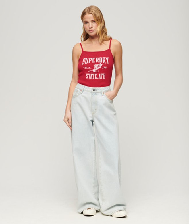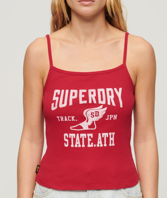 Superdry Athletic College Geribde Camitop met Grafische Print Rood | ricciano NEDERLAND