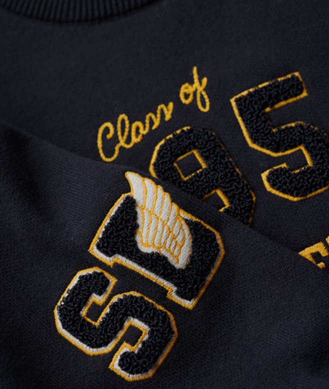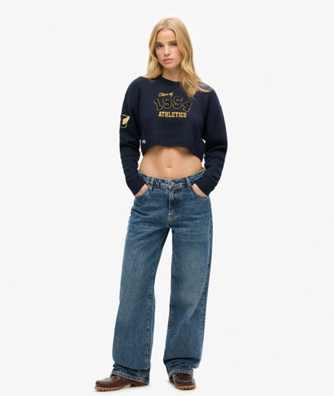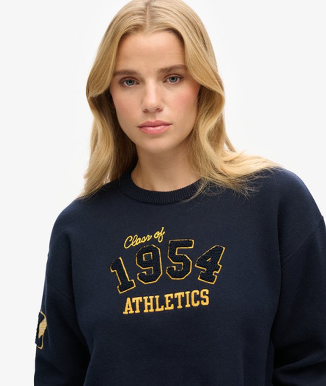 Superdry Korte Varsity Trui met Ronde Hals Blauw | ricciano NEDERLAND