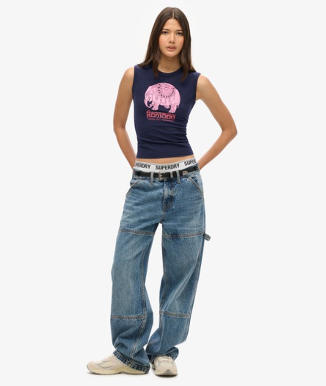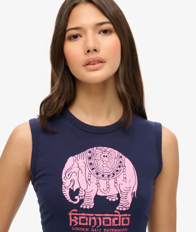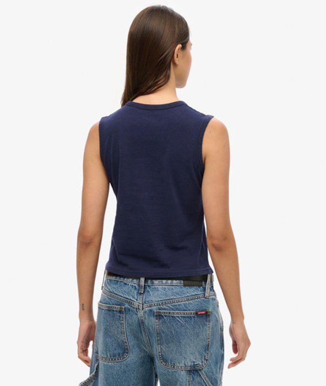 Combineer het met een jeans en een oversized jasje voor de meest stijlvolle look die je in de zomer kunt dragen. Slimfit - de nauw aansluitende pasvorm zorgt voor een getailleerd silhouet Laag uitgesneden ronde hals Mouwloos Grote afbeelding op de voorkant