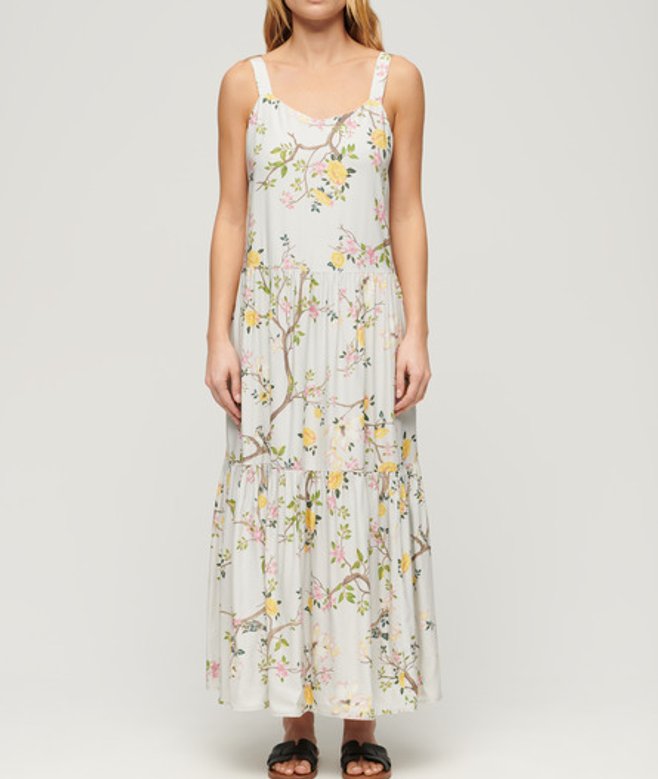 Superdry Geweven Gelaagde Maxi-jurk Lichtgrijs | ricciano NEDERLAND