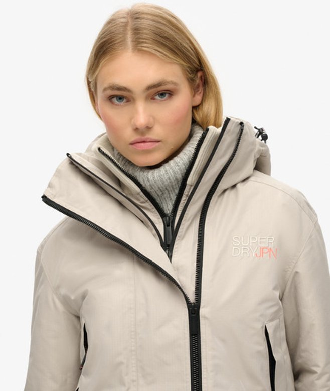 Wijdvallende pasvorm - losser en soepeler, voor die momenten waarop je ruimte nodig hebt om te bewegen Klassieke ripstop-stof Capuchon met elastisch trekkoord met stopper Drielaagse ritssluiting Twee zakken met rits Verstelbare mouwboorden met klittenbandsluiting Elastische binnenmanchetten Verstelbaar elastisch koord in de zoom Geribde binnenkraag Voering van mesh Eén binnenzak Geborduurde Superdry-logo's Opgedrukt logo op de mouw Contrasterende biezen