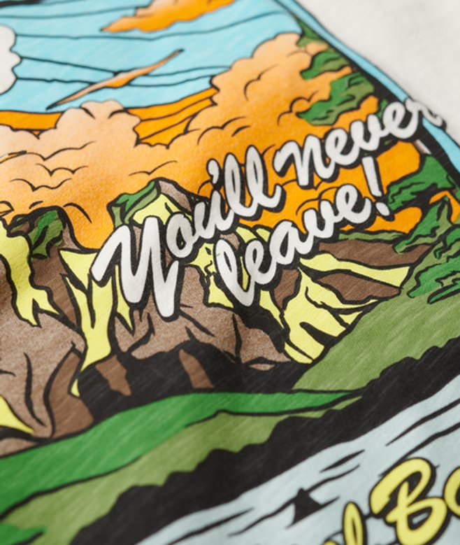 Ons Neon Travel Graphic-T-shirt met losse pasvorm is geïnspireerd op het buitenleven en geeft je vrijetijdsgarderobe een avontuurlijke vibe.