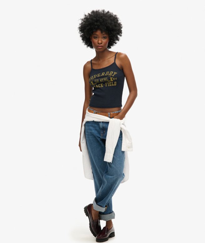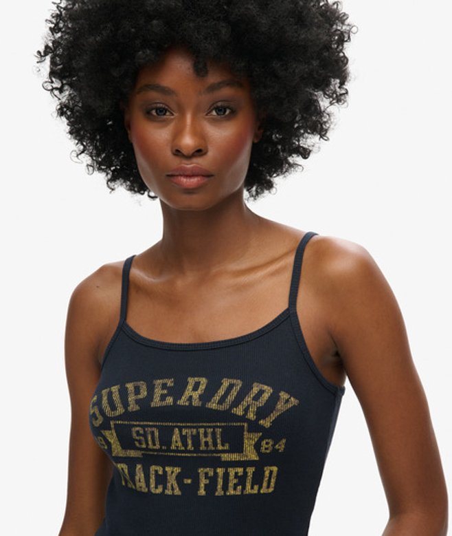 Superdry Athletic College Geribde Camitop met Grafische Print Blauw | ricciano NEDERLAND
