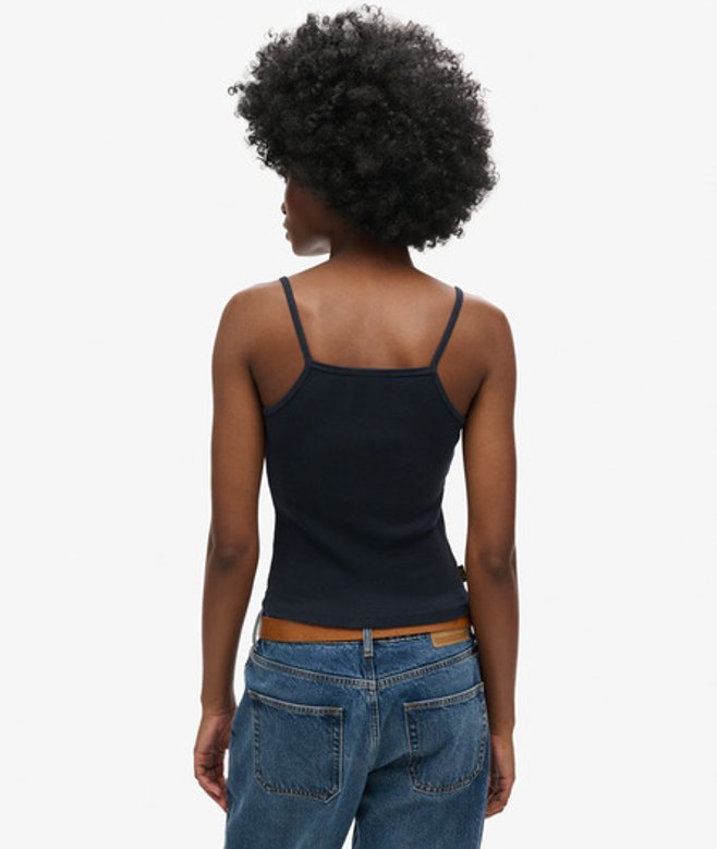 Slimfit - de nauw aansluitende pasvorm zorgt voor een getailleerd silhouet Geribd materiaal Spaghettibandjes Rechte halslijn Vervaagde grafische print Superdry-label