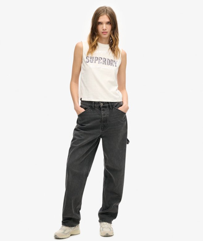 Superdry Archive Aansluitende Tanktop met Versieringen Crème