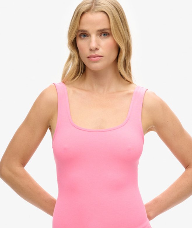 De slim-fit geeft je meteen een boost in stijl en zelfvertrouwen - en wie houdt daar niet van? Slimfit - de nauw aansluitende pasvorm zorgt voor een getailleerd silhouet Vierkante hals Met bandjes Minilengte Kenmerkend metalen label aan de achterkant