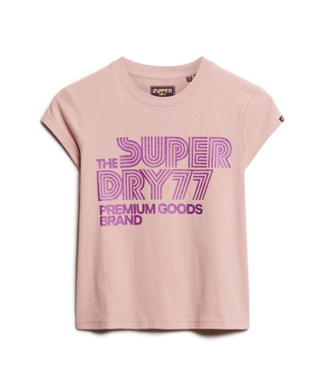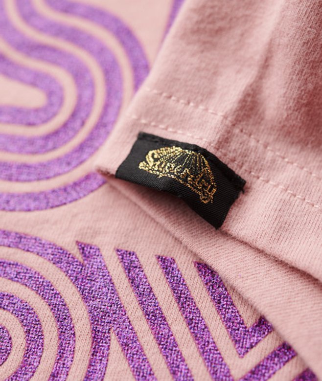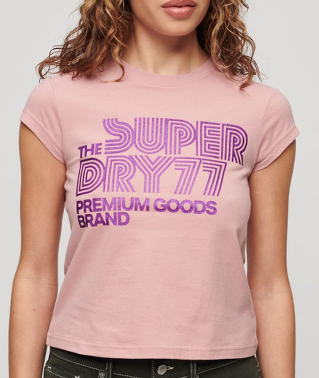 Geribde ronde hals Kapmouwen Superdry-logoprint met glitter Kenmerkend Superdry-label