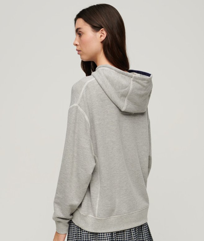 Wijdvallende pasvorm - losser en soepeler, voor die momenten waarop je ruimte nodig hebt om te bewegen Lichtgewicht loopbackmateriaal Gevoerde capuchon met gekruiste halslijn Verlaagde schouderinzet Lange mouwen Geribde boorden en zoom Geborduurd logo