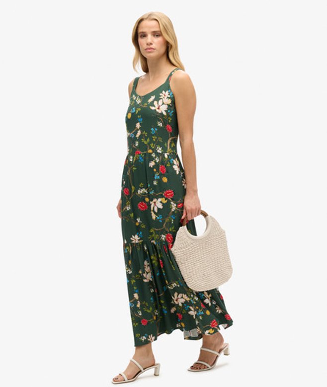 Superdry Geweven Gelaagde Maxi-jurk Groen | ricciano NEDERLAND